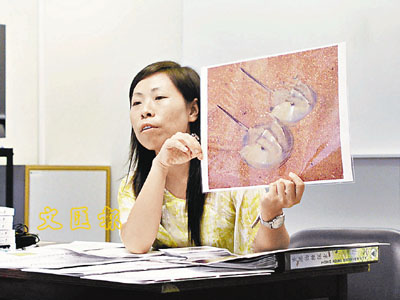■楊嘉儀表示,每月收到5至6個查詢物種的電郵,甚至有人拍下馬蹄蟹交配的照片。 本報記者羅敬文 攝