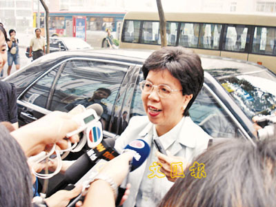 ■世衛總幹事中方候選人、香港特區前衛生署長、WHO助理總幹事陳馮富珍接受傳媒採訪。本報北京新聞中心傳真