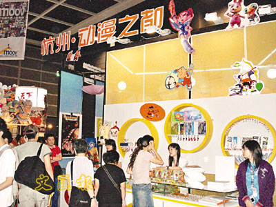 ■動漫節中的杭州攤位,吸引不少人士駐足觀賞。本報記者王岳 攝