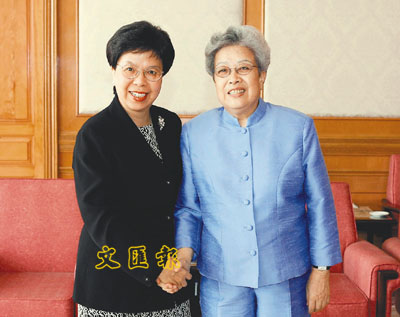 ■國務院副總理吳儀在北戴河會見世衛總幹事候選人陳馮富珍。 新華社