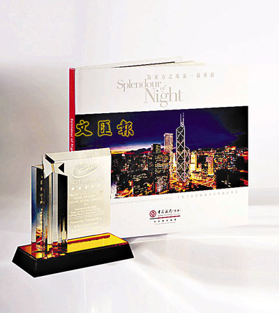 ■中銀香港編纂的《中銀大廈燈飾攝影比賽攝影專集》(右)獲2006年Astrid國際設計大賽大獎(左)。