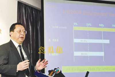 未來研發方面,他指出,公司會繼續將營業額一成投放研發產品,相信新產品晶片管芯焊接及覆晶晶片直接玻璃封裝應用設備可於明年推出市場。