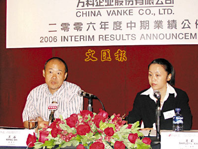 ■萬科企業董事長王石(左)與董事兼董事會秘書肖莉出席中期業績記者會。 本報記者卓建安 攝