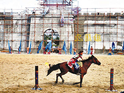 三百名馬術技演員,在滾滾黃沙中,金戈鐵馬,上演一場大型馬術表演。
