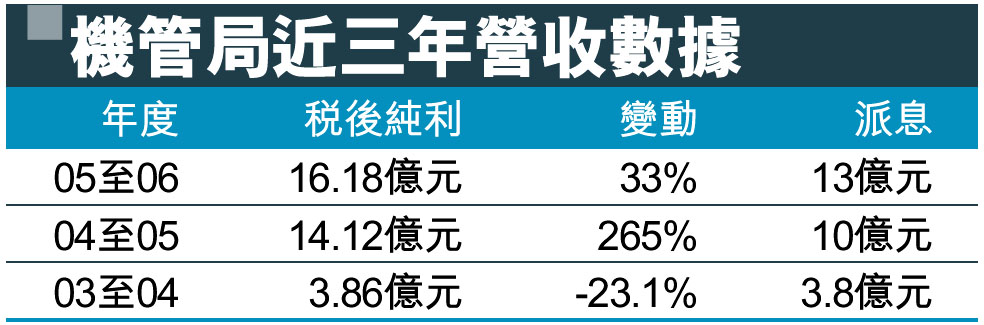 機管局近三年營收數據 (圖)
