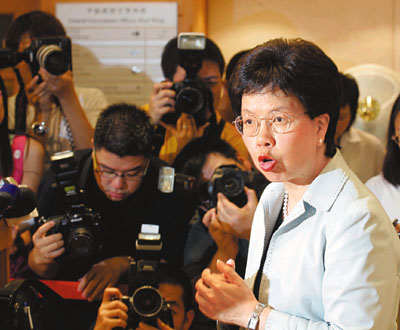 她表示,在港曾與行政長官曾蔭權及外交部駐港特派員呂新華等會面,商談如何開展競選的問題外,亦曾聽取業界意見。她目前心情仍有少許緊張,但此行確認中央政府的支持及曾蔭權與特區的配合,猶如向自己派了定心丸及打下強心劑:「這令我可全力以赴,盡力而為,力爭不負眾望。」
