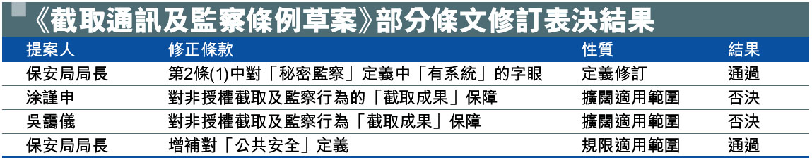 《截取通訊及監察條例草案》部分條文修訂表決結果 (圖)
