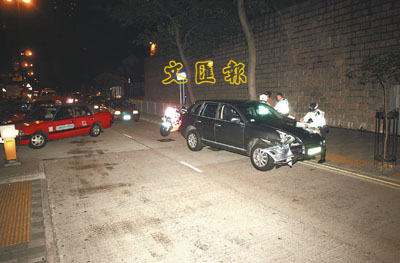 昨日凌晨2時40分,一名姓陳司機(39歲)駕駛一輛保時捷四驅車,沿柯士甸道向廣東道方向行駛,至吳松街交界時,前行一輛的士正欲右轉,司機想爬頭,結果失控撞及的士右邊車尾;四驅車再衝前10米始告停下。