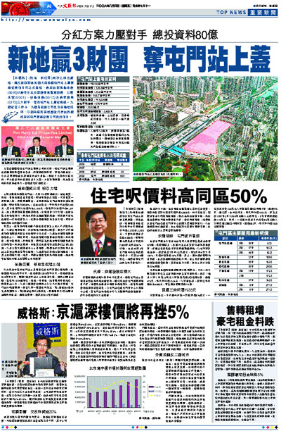 事實上,近年新鴻基地產不但在住宅物業上加入不少創新元素,以配合用家需要,亦於商場方面用心經營,吸收不少外國成功商場經驗再配合本地獨特文化元素,以成為本港商場經營領導者之一。與此同時,新地近年雖然積極競投兩鐵一局的項目,但中標率低,反而長實、信和置業於過去兩年則屢見成功投得兩鐵一局物業發展,如長實已先後奪得地鐵夢幻之城1及2期,以及九鐵大圍維修中心上蓋項目,而信置亦投得沙田火炭站上蓋物業與及荃灣七街等,以及成功投得西九龍相連地,令其土地儲備大增。相反,同樣坐擁巨資的新鴻基地產,過去兩年在增加本港土地儲備上未見積極。