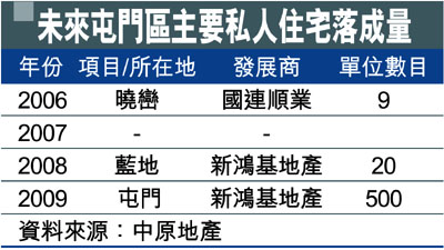 未來屯門區主要私人住宅落成量 (圖)