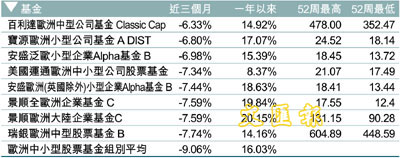 雖然近一年歐洲中小型股基金平均收益已經有22.6%,但若要爬回歷史高點位置,路途仍然漫長。基本上,中小型股有快跌急漲的特性,在景氣復甦的初期階段,容易率先有所表現,對歐股有興趣可以分批收集歐洲中小型股基金。