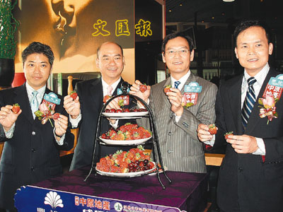 ■謝偉銓(右二)表示,翔龍灣呎價將參考嘉亨灣整體平均呎價。 本報記者周穎 攝