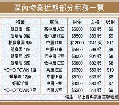 區內物業近期部分租務一覽 (圖)