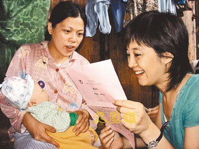 許戈輝與當地的貧困母嬰面對面、手拉手交流。在洋後村,記者跟隨許戈輝走進這樣一戶人家:孕婦魏雲愛,雙目失明,而丈夫又弱智,家中沒有任何生活來源,租住的屋子破爛不堪,現在家裡僅靠一個八十多歲的老婆婆維持生計。當親眼目睹魏雲愛一家的生活狀況後,許戈輝被深深感動,並當即拿出500元捐給魏雲愛一家。