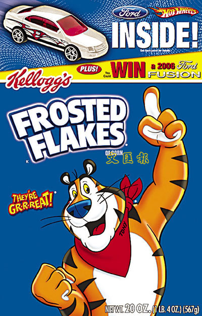 這60萬盒穀麥食品除了每盒放進一架Fusion玩具車外,還附送推介Fusion中型車的圖片。贈送一架Fusion玩具車的家樂氏食品,包括Froot Loops、Apple Jacks、Frosted Flakes和Cocoa Krispies。Fusion是福特其中一種最暢銷的汽車,美洲區總裁菲爾茨表示持續宣傳Fusion被福特放在最首要位置,與過往慣常只替一種產品宣傳3至4個月的做法截然不同。