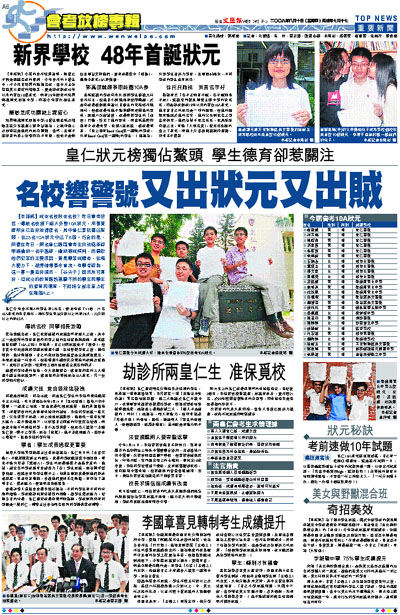 ¡@¦¨¤]¦W®Õ±Ñ¤]¦W®Õ¡S¬Q¤é·|¦Ò©ñº]¡A¶Ç²Î¦W®ÕºK¤Uµ´¤j¦h¼Æ10Aª¬¤¸¡A¥Î¨Æ¹êÃÒ©ú¦Û¤v¨Ã«D®ö±oµê¦W¡A¨ä¤¤¬Ó¤¯®Ñ°|¿W¦û÷´ÀY¡A¦b25¦W10Aª¬¤¸¤¤¦û¤F6Ó¡C¥©¦Xªº¬O¡A¦P¼Ë¦b¬Q¤é¡A¨â¦W¬Ó¤¯À³©¡·|¦Ò¥Í¦Vªk®x©Ó»{¦ê¿Ñ·m§T¤@¦W¤¤Âå®v¡A·m§T¸o¦¨Ô§P¡A¦Ó¾ÉP¥L̥Ǯתº¥Dnì¦]¡A³º¬O¾Ç·~¦¨ÁZ®t¡A¦b·¥¤jÀ£¤O¤U¡A¿ï¾Ü°µÃa¨Æ¨Ó«Å¬ª¡C¦³¾ÇªÌ»{¬°¡A³o¤@³ß¤@¼~¨Ã«D°¸µM¡A¡u¨¦¦y¤l¡v©TµMµL¥i«p«D¡A¦ý¦¨¥\ªº±Ð¨|À³¸ÓÝÅU¤£¦Pªº¾Ç¥Í©M¾Ç¥Íªº´¼¨|©M¼w¨|¡A¤£¯à±N¥þ³¡ª`·N¤O¨n¦b´XÓA¤W¡C