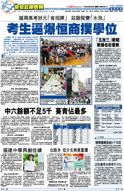 ¡@Án¦W¤j¾¸ªº«í¥Í°Ó¾Ç®Ñ°|¡A¬Q¤é¤W¤È8®É³\¤w¦³¦Ò¥Í®³µÛ¦¨ÁZ³æ¯¸¦b®Õªù¥~¦uÔ¡Aª½¦Ü9®É¥b¡A³ÌÅq®p®É¬ù¦³300¤H¶°é±Æ¶¤¡A®aªø¡B¾Ç¥ÍÀ½º¡®ÕªÙ¡C¥¼¨ì¬Q¤È1®É¡A¤¤¤»¾ÇÃB¤w¡u¤õ³t¡vÃzº¡¡A³Ì«á¤@¦W¾Ç¥Í¬O°|ªø¥H¯S®í±¡ªp¨ú¿ý¡C°|ªø±Z±d±`ªí¥Ü¡A¤µ¦~³æ¬O20¤À©Î¥H¤Wªº¥Ó½Ðªí¤w¶W¹L500¥÷¡AÀò¨ú¿ýªº361¦Wªº¾Ç¥Í¡A¦³320¤H¦¨ÁZ¬°23¤À©Î¥H¤W¡A·í¤¤§ó¦³7¤H¹F30¤À¡A¸û¥h¦~¦h3Ó¡A³Q¿ï¤¤ªº¤w¬O¡uºë^¤¤ªººë^¡v¡C