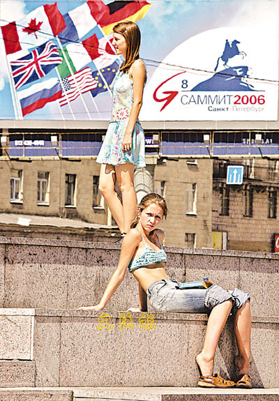 站在八國峰會旗幟下,俄國新一代已經「大解放」,拋掉歷史包袱。 法新社