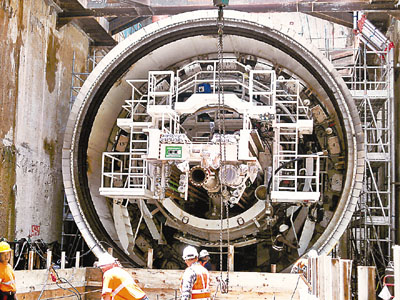■此淤槳式隧道鑽挖機重約800公噸,直徑逾8米,比一架747客機還要大,在港首次用於鐵路工程。