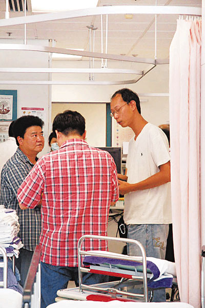 ■報稱於深圳遇迷煙黨打劫男子(右)返港,在北區醫院向探員講述遇事經過。