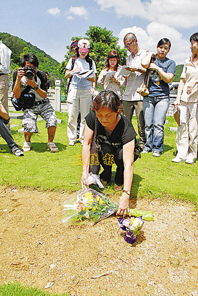 ■梁成恩母親拜祭兒子後,亦在殉職警員曾國恆墳前放置鮮花拜祭。