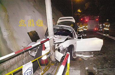 【本報訊】一輛本田「辣車」昨晨在大埔新娘潭路飛馳期間,疑避狗失控衝過對開行車線,狂撼路邊燈柱,車頭嚴重損毀,兩女一男浴血車廂,須由消防員到場救出送院。警方目前仍在調查意外原因,不排除有超速之嫌。