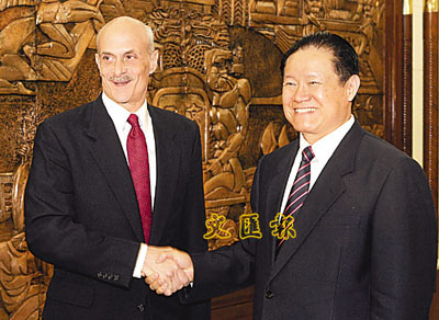 周永康月前會見美國國土安全部部長。 新華社