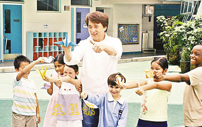 ■成龍和一班小朋友拍宣傳片,覺得很趣致。