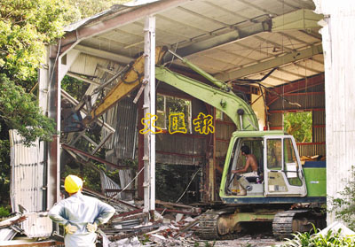 ■工人在香灼璣租用的觀音山倉庫清拆建築物。本報記者曾慶威 攝