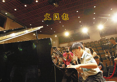 面對記者的提問,他顯得天真爛漫,然而當坐在鋼琴前就變成另外一個人,一雙小手在黑白鍵之間游走,表情認真,一派大師風範,在一大堆鎂光燈下完美地演繹了柯普蘭的《三個感覺》,令在場的傳媒都不禁拍掌叫絕。 ■本報記者 夏志禮