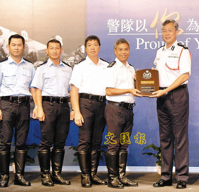 ■警務處處長李明逵(右)嘉許25名警員及18個警隊單位,表揚他們在世貿會議期間的表現。