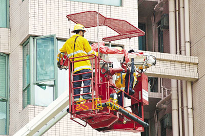 【本報訊】港、九及新界昨先後發生3宗工業意外,釀成兩死一傷慘劇。其中一名工人懷疑沒有佩戴安全帶,在土瓜灣一高級豪宅屋苑爬出外牆棚架工作時,因「狗臂架」螺絲鬆脫,致驟失平衡自23樓飛跌落5樓平台慘死;此外,一名技工在元朗工業h印刷廠,遭拆下的半噸重滾筒如泰山壓頂壓中,傷重不治。