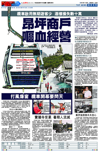 東涌纜車「昂坪360」一波三折,開幕之日遙遙無期。當初寄望藉東涌纜車開幕而大做遊客生意的昂坪市集商戶,由6月試業至今,都有點意興闌珊。雖暫時不用繳納舖租,惟商戶指「燈油火蠟、人工樣樣都係錢」,現時「做一日蝕一日」,其中和記隆負責人表示,一個半月來已虧蝕數萬元。據悉,食肆酒樓的損失更動輒以十萬元計;有茶館負責人亦指出,市集開幕至今食客寥寥可數,十分無奈。