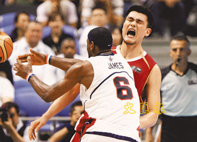 心知大勢已去的中國隊,下半場本著輸少當贏的原則,反而放開了手腳,姚明的遠射,王仕鵬的三分球頻頻令美國隊措手不及。第三節結束時,中國隊以62:93落後。