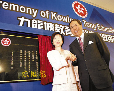 ■李國章及羅范椒芬出席九龍塘教育服務中心的啟用典禮,並主持揭匾儀式。本報記者李志樑 攝