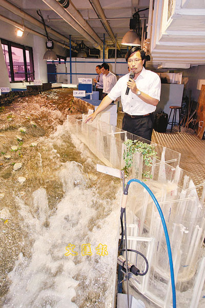 ■韋永康博士介紹在荃灣曹公潭上游的漩渦式排水防洪系統。 相片由理工大學提供