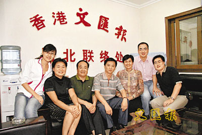 河北省委宣傳部常務副部長楊汭(左四)、河北省政協常委王國強(左三)昨到訪香港文匯報河北辦事處。楊汭部長對河北辦的工作給予了肯定,他希望河北辦更好地宣傳河北,通過文化交流進一步促進冀港合作。趙憲忠 攝