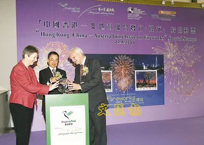 ¡@·Ïªáºì©ñ©óºû¦h§Q¨È´ä©]ªÅªº´º¦â¡A¦L»s¦¨¶l²¼¡A·Q¥²¥O¶°¶lªÌ·R¤£ÄÀ¤â¡C»´ä¶l¬F¬Q¤é¥¿¦¡µo¦æ¡u¤¤°ê»´ä¡X¶ø¦a§QÁp¦Xµo¦æ¡G·Ïªá¡v¯S§O¶l²¼¡A·í¤¤¥]¬A¨â´Ú±È50¤¸ªº¶l²¼¡A¥H¦W¶Qªº¤ô´¹¹¢¥¬¾®³y·Ïªá¥E©ñªºµºÄR¡A¤@¤ùÅwÄ˼ö¯Pªº®ðª^¡C¬Q¤é¥Ñ»´ä¶l¬F¸p¸pªøÃÓºa¨¹(¤¤)Áp¦P¶ø¦a§Q¶l¬F¶°¶l³¡Á`ºÊDr Erich HAAS(¥k)¤Î¶ø¦a§Q¾n´äÁ`»â¨Æ¸¯º¿§Q³Õ¤h(¥ª)¡A¤@¦P¥D§·Ïªá¶l²¼µo¦æ»ö¦¡¡C