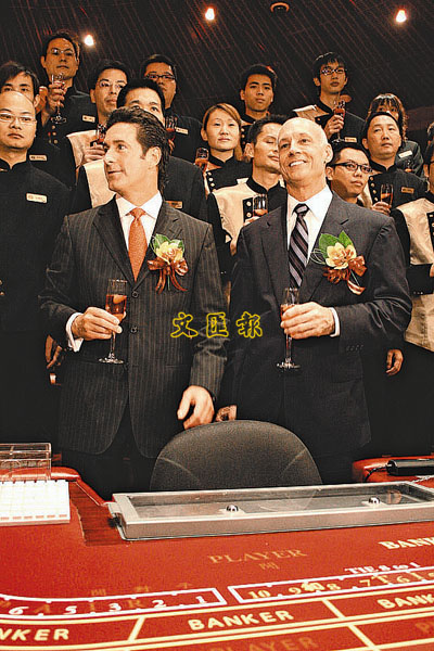 ■金沙娛樂場娛樂綜合體落成部分開幕,總裁Mark Brown(左)出席開幕禮。本報記者羅陽 攝