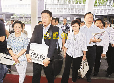 ■民建聯代表帶同7萬反對開徵GST的市民簽名,與唐英年會面。本報記者劉國權攝