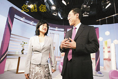 ■唐英年亮相葉劉淑儀主持的《葉劉博客》。本報記者曾慶威 攝