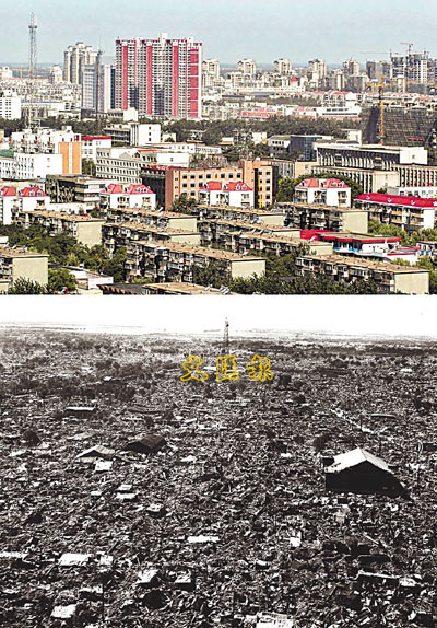 唐山地震三十周年,新唐山與震後唐山對比。 新華社