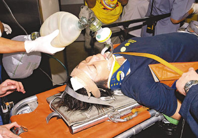 ¡@¤j¶¤®ø¨¾ûµn¤s¡A¸¦æ¶¤ª½¤É¾÷¥ý»°©è¡AÀH¾÷Âå¥Í¨£¶ËªÌ±¡ªp¤£§®¡A§Y®É¥´°w¬I±Ï¡AµM«á°e¤Wª½¤É¾÷¡A¬°±Ï¶¤¤Í¦Ó¦çªA¬V¦åªº§õ§Ó±j¡A³¦P¶ËªÌ°e©¹ªF°ÏÂå°|¡C¤k¶ËªÌ³Q°e¤J²`¤ÁªvÀø¯f©Ð·m±Ï¡A±¡ªp¦M¬p¡C