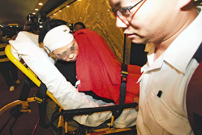 ■追李嘉誠「還錢」的男子頭部受傷送院。 本報記者蔣焯文 攝