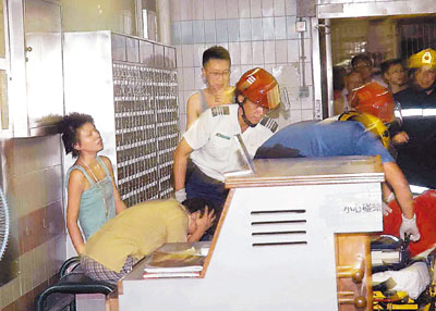 ■死裡逃生的兩母女在地下大堂由救護人員安撫。