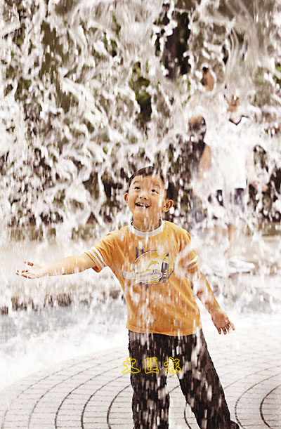 近日本港天氣無常,時晴時雨。難得昨天天朗氣清,小朋友趁機玩玩水、散散熱。天文台指今日部分時間有陽光,氣溫介乎攝氏27至31度,吹和緩東南風。展望隨後兩天有驟雨,下周後期天晴炎熱。 本報記者劉國權 攝