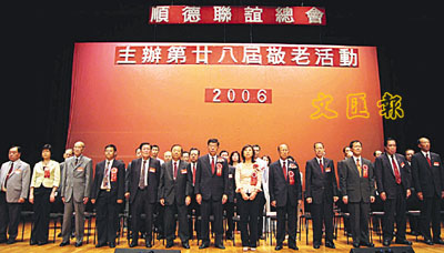 出席敬老大會的順德聯誼總會首長包括首席會長羅景雲,會長盧德光、黃振民、蘇善祥,副主席伍步功等。