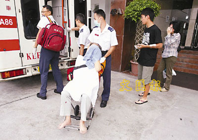 其後,有人致電報警,兩父子在女戶主陪同下,由救護車送往律敦治醫院。