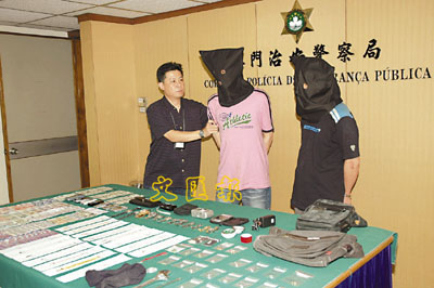 ■在澳門被捕的兩名香港爆竊疑犯。