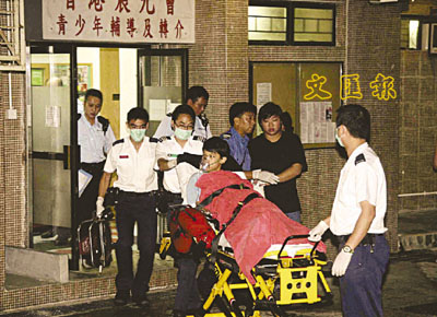 ■兩名傷者由救護員抬出送院。本報記者鄺福強 攝